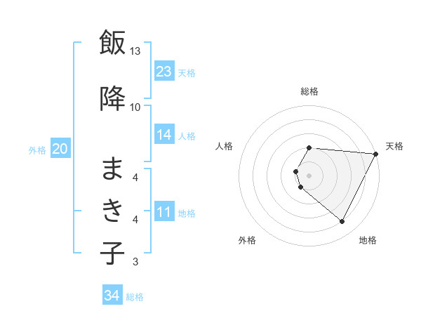 飯降 まき子さんを姓名の画数から五運を鑑定