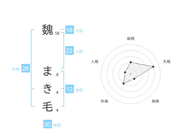 魏 まき毛さんの総格は30画の2点!