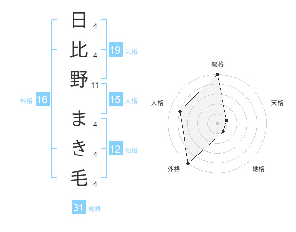 日比野 まき毛さんを姓名の画数から五運を鑑定