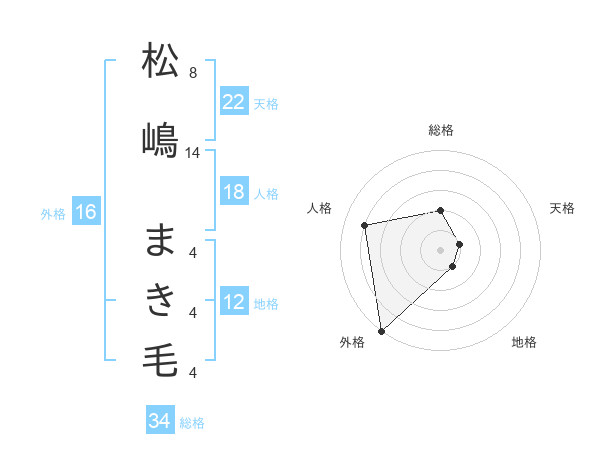 松嶋 まき毛さんを姓名の画数から五運を鑑定