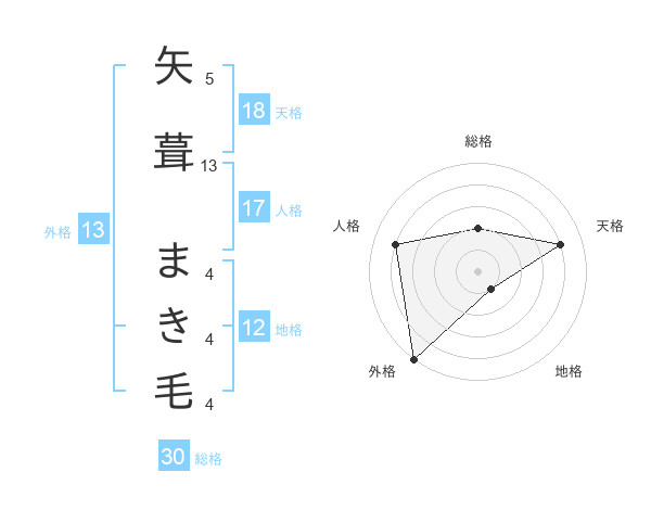 矢葺 まき毛さんの外格は13画の5点!