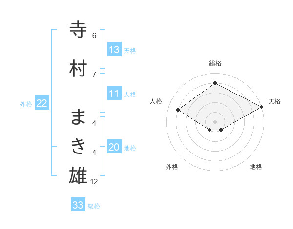 寺村 まき雄さんの総格は33画の4点!