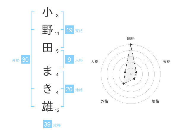 小野田 まき雄さんを姓名の画数から五運を鑑定