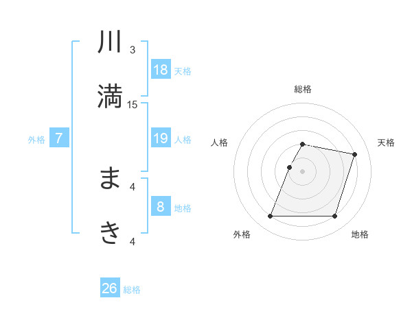川満 まきさんの天格は18画の4点!