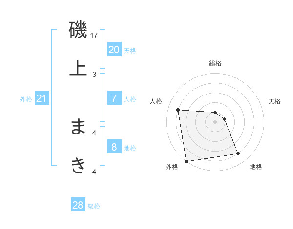 磯上 まきさんの外格は21画の5点!