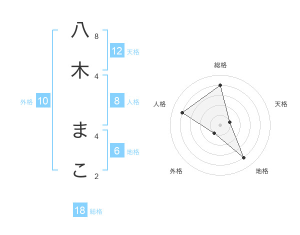 八木 まこさんの総格は18画の4点!