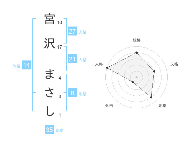 宮沢 まさしさんを姓名の画数から五運を鑑定