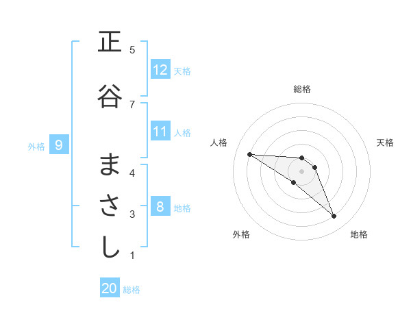 正谷 まさしさんを姓名の画数から五運を鑑定