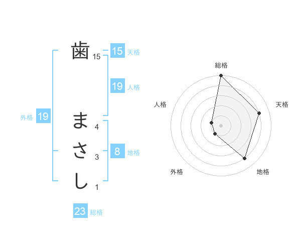 歯 まさしさんの総格は23画の5点!