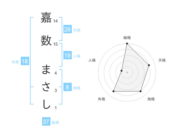 嘉数 まさしさんを姓名の画数から五運を鑑定