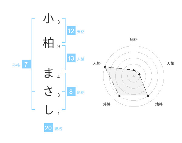 小柏 まさしさんの天格は12画の1点!