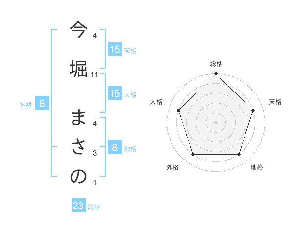 今堀 まさのさんを姓名の画数から五運を鑑定