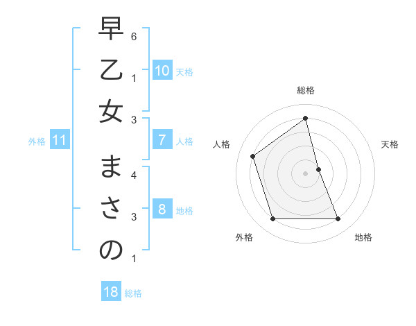 早乙女 まさのさんを姓名の画数から五運を鑑定