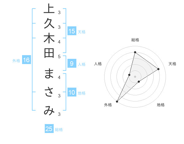 上久木田 まさみさんを姓名の画数から五運を鑑定