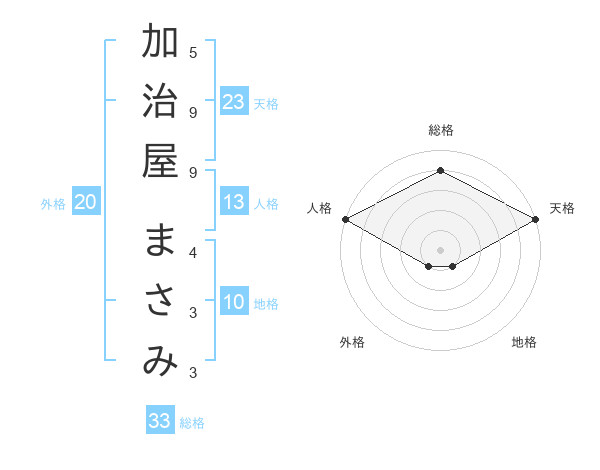加治屋 まさみさんの総格は33画の4点