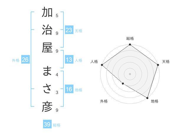 加治屋 まさ彦さんを姓名の画数から五運を鑑定