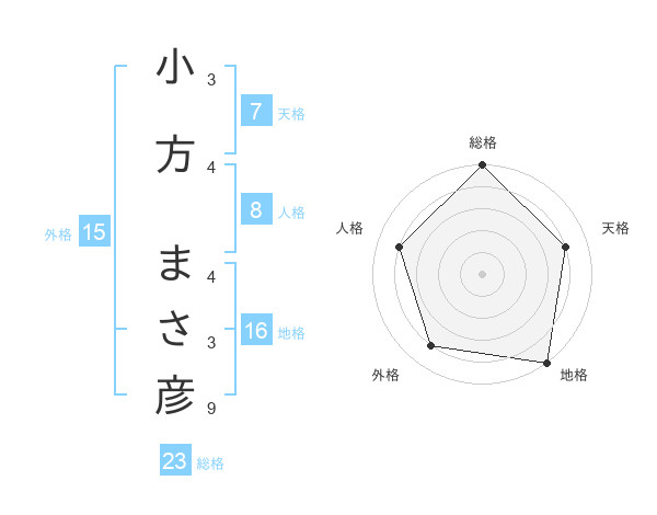 小方 まさ彦さんの総格は23画の5点!