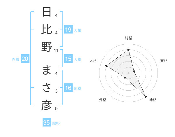 日比野 まさ彦さんを姓名の画数から五運を鑑定