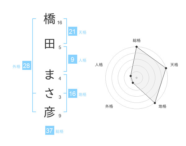 橋田 まさ彦さんの総格は37画の5点