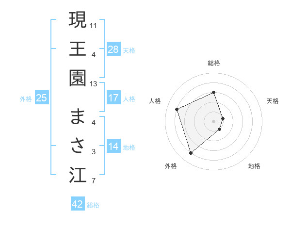 現王園 まさ江さんを姓名の画数から五運を鑑定