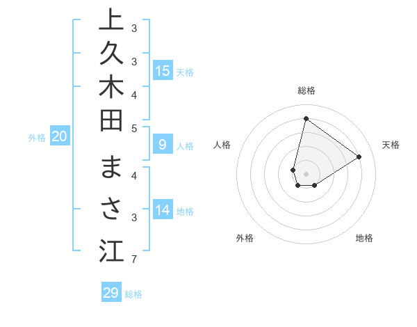 上久木田 まさ江さんを姓名の画数から五運を鑑定
