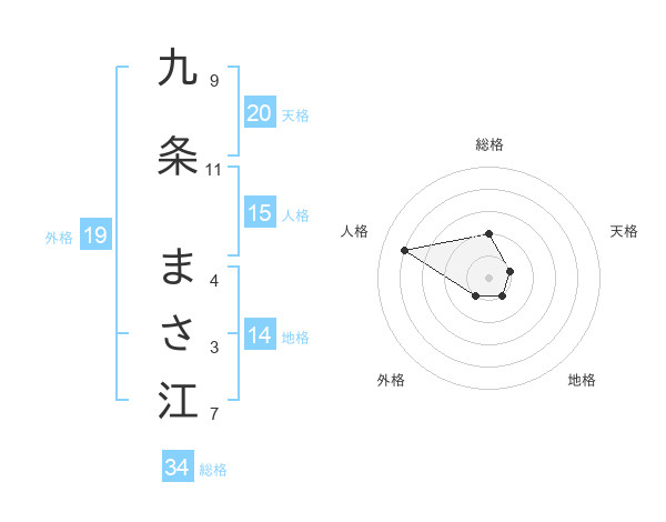 九条 まさ江さんを姓名の画数から五運を鑑定