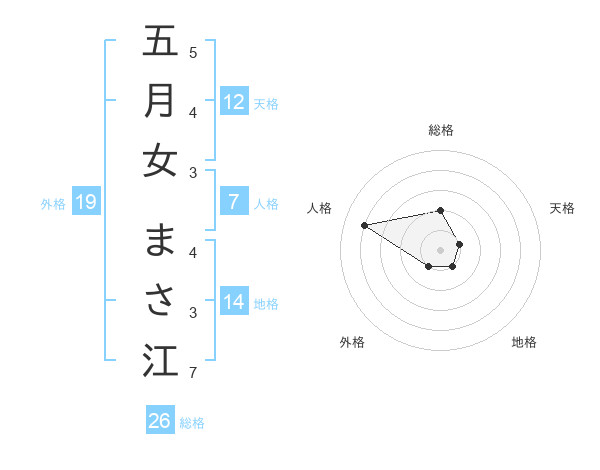 五月女 まさ江さんを姓名の画数から五運を鑑定