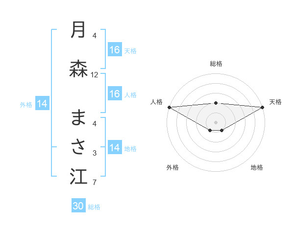 月森 まさ江さんを姓名の画数から五運を鑑定
