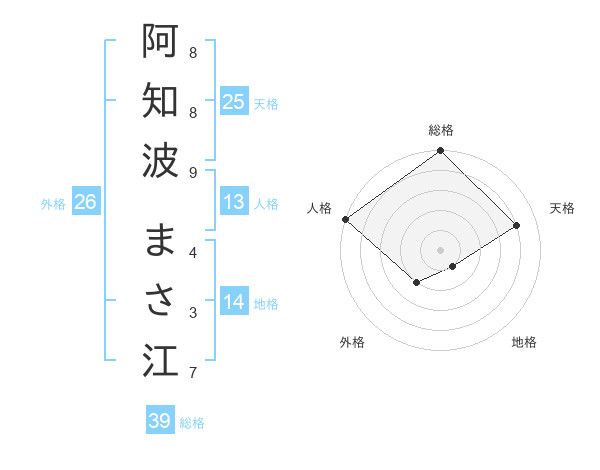 阿知波 まさ江さんを姓名の画数から五運を鑑定