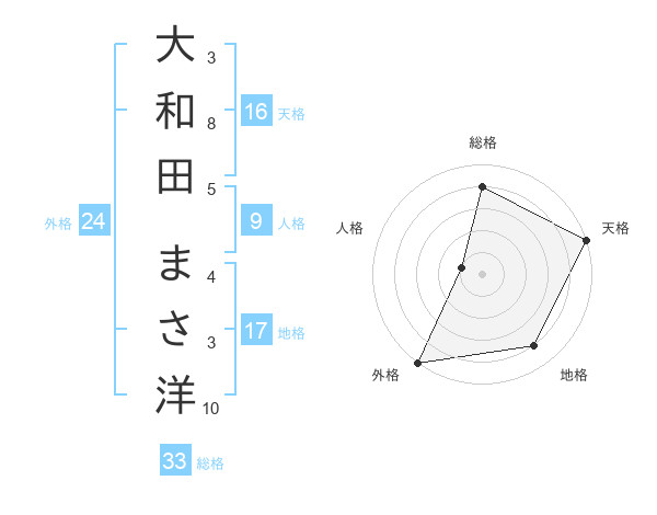 大和田 まさ洋さんを姓名の画数から五運を鑑定