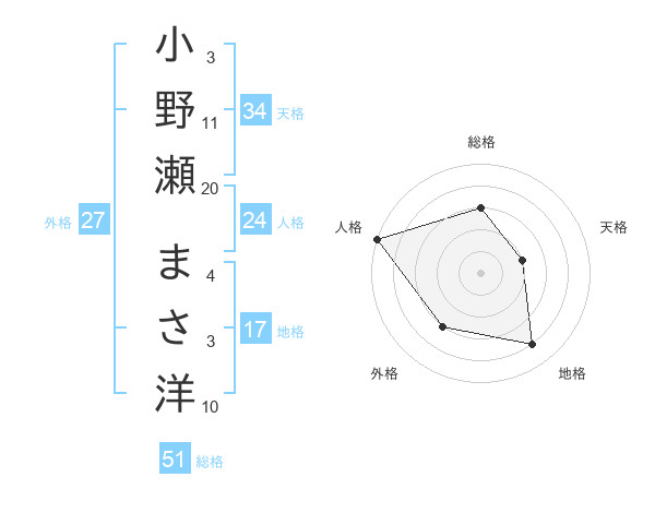 小野瀬 まさ洋さんを姓名の画数から五運を鑑定