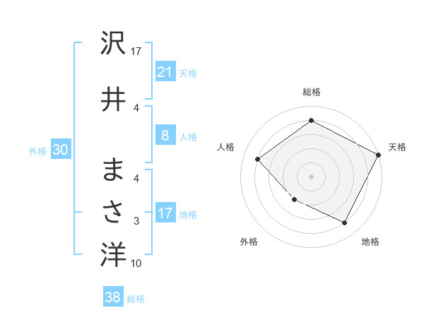 沢井 まさ洋さんを姓名の画数から五運を鑑定