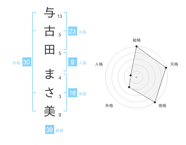 与古田 まさ美さんを姓名の画数から五運を鑑定