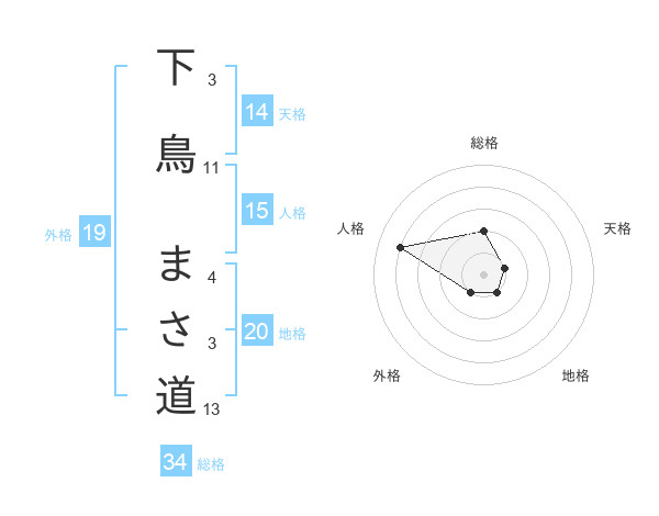 下鳥 まさ道さんの総格は34画の2点!