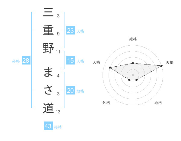 三重野 まさ道さんを姓名の画数から五運を鑑定