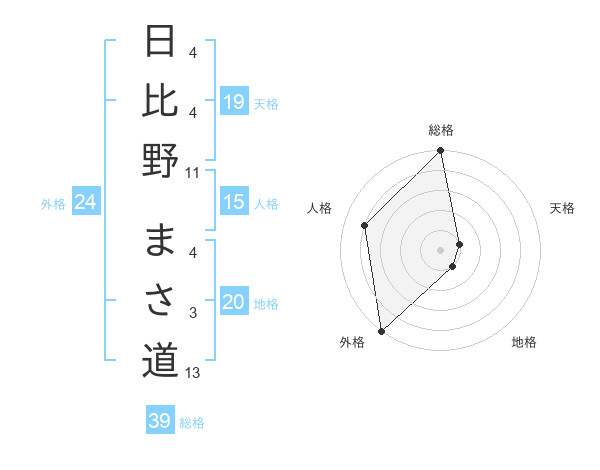 日比野 まさ道さんの外格は24画の5点!