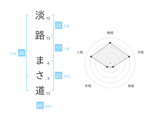 淡路 まさ道さんを姓名の画数から五運を鑑定