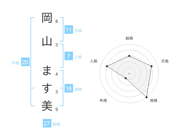 岡山 ます美さんの総格は27画の3点!