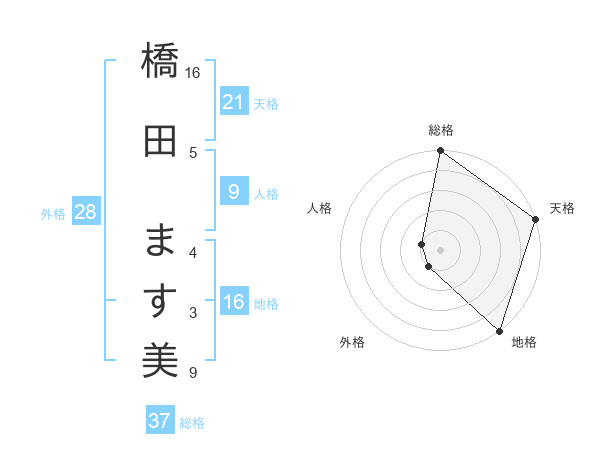橋田 ます美さんを姓名の画数から五運を鑑定