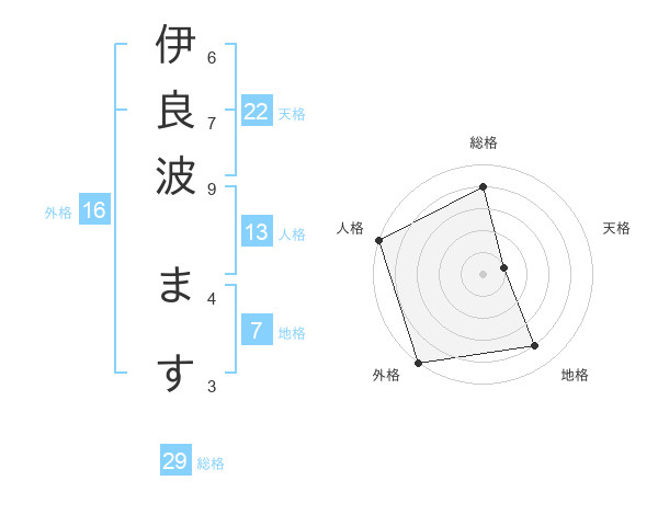 伊良波 ますさんの外格は16画の5点!