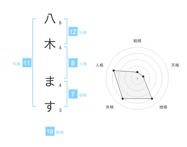八木 ますさんの外格は11画の4点!