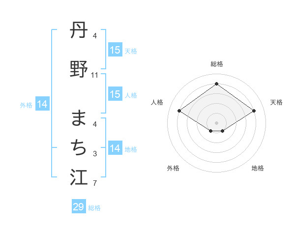 丹野 まち江さんを姓名の画数から五運を鑑定