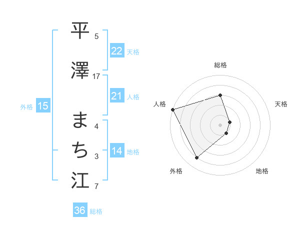 平澤 まち江さんの総格は36画の3点