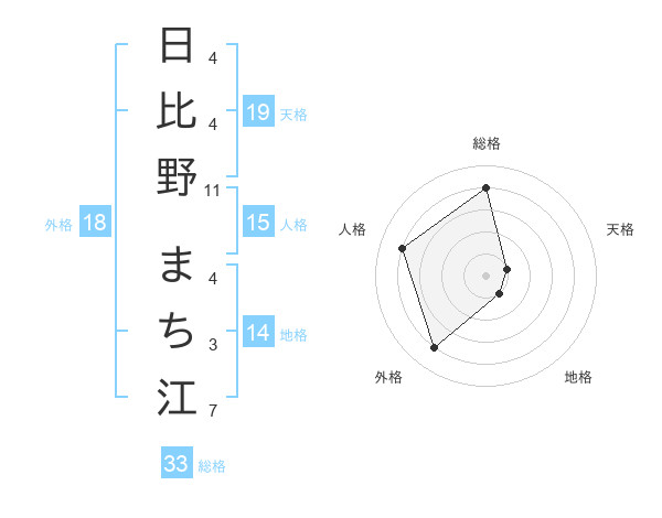 日比野 まち江さんを姓名の画数から五運を鑑定