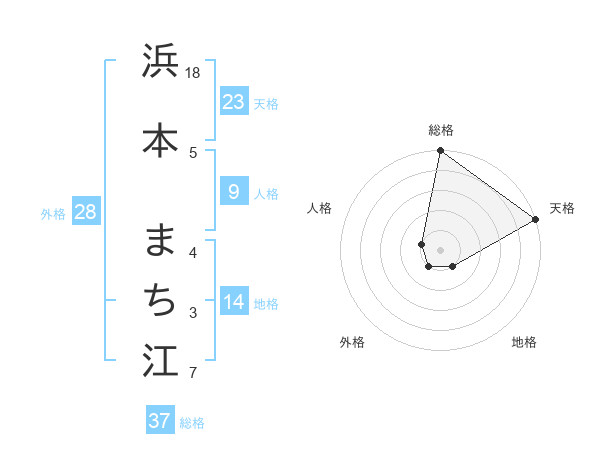 浜本 まち江さんを姓名の画数から五運を鑑定
