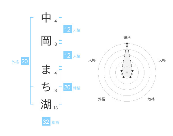 中岡 まち湖さんの総格は32画の5点!