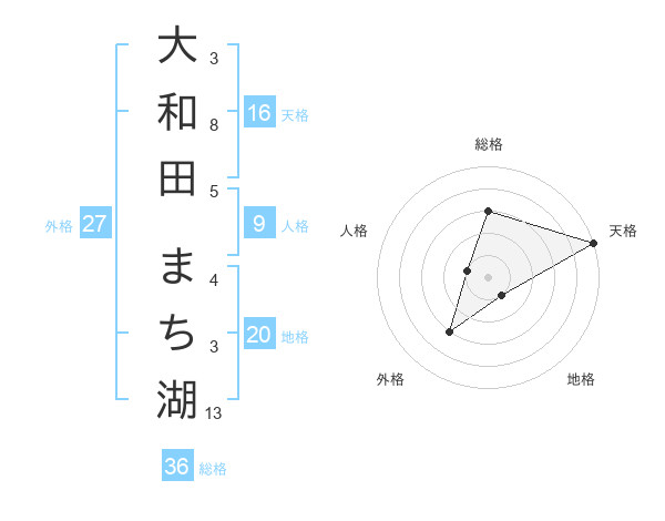 大和田 まち湖さんを姓名の画数から五運を鑑定