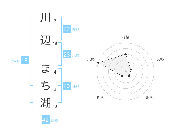 川辺 まち湖さんの総格は42画の3点!