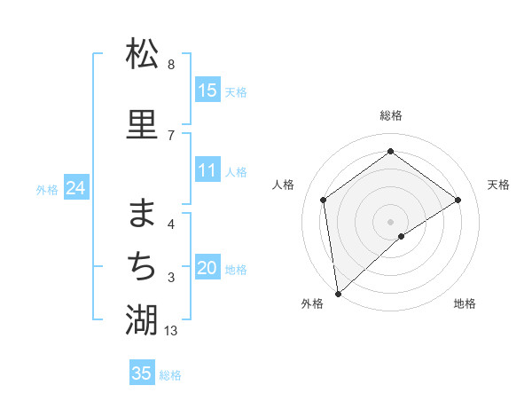 松里 まち湖さんの総格は35画の4点!