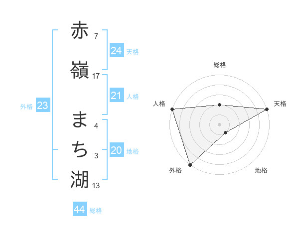 赤嶺 まち湖さんを姓名の画数から五運を鑑定